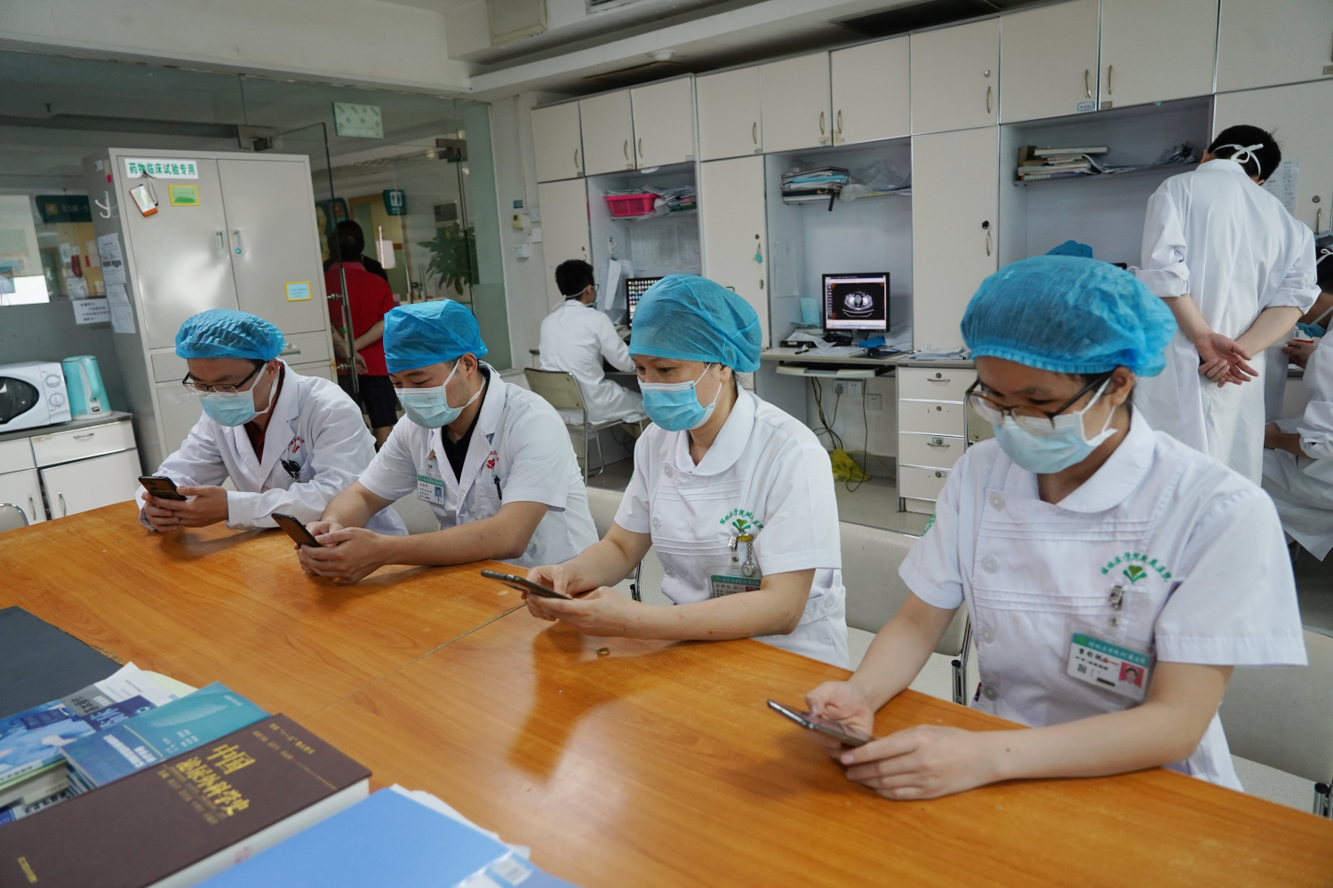 当天附属医院积极组织全院党员干部职工通过桂视网直播观看了先进事迹报告会。在附属医院肾内科一病区、泌尿外科等临床一线,以及在党办、院办、监察室、人力资源部、组织科等行政科室,干部职工利用工作间隙时间,纷纷用手机或电脑认真观看直播。当看到身边同事卢青作报告时,他们欢呼起来,榜样就在自己身边。不少党员干部职工纷纷表示,将以抗疫先锋为自己的榜样,汲取其力量,不忘医者初心,立足本职岗位,以实际行动促进医院发展,为百姓健康提供更优质的服务。