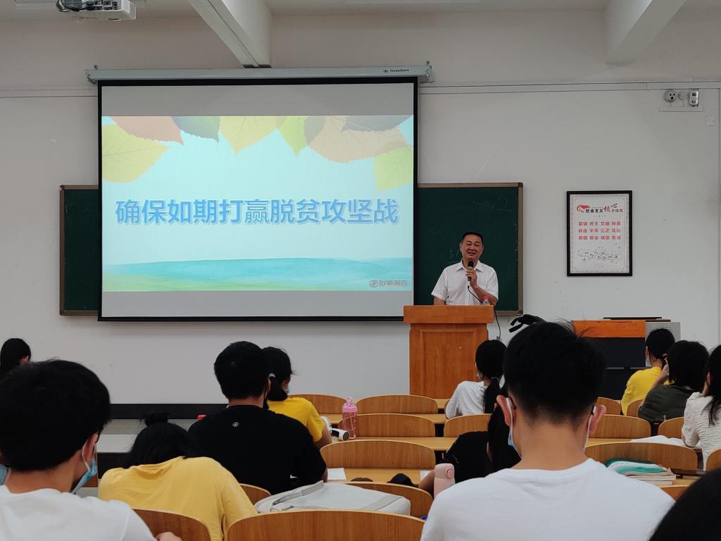 本次授课是副院长辛懋作为班级导师与学生们之间进行的首次会面,辛副院长以实际行动推动了大学生班级导师制的实施,指引学生树立理想信念,主动担当作为。同学们表示,通过这次课堂交流,学习了脱贫攻坚战的具体进展以及在最后决胜阶段,党和国家将如何确保高质量的打赢脱贫攻坚战,进一步明确了党和国家在打赢脱贫攻坚战上的决心,激励了自身要更加努力学习,用实际行动为祖国奉献青春力量。