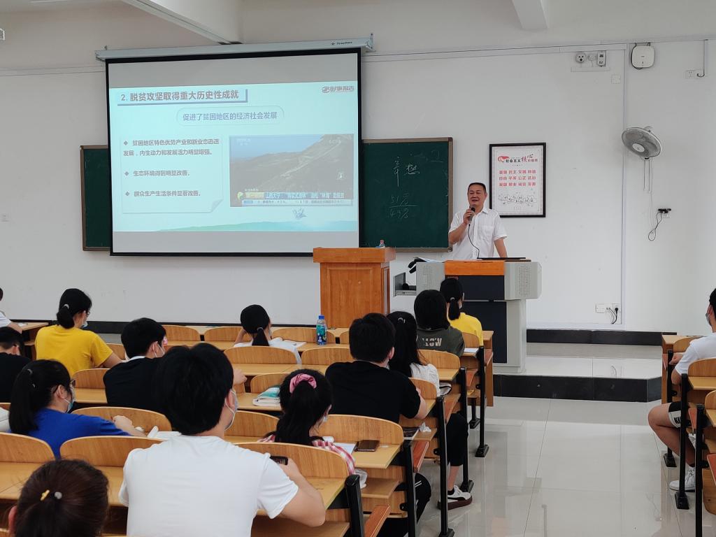 课上,辛副院长概述了目前我国脱贫攻坚战的进展,指出今年是全面建成小康社会的最后一年,是脱贫攻坚的决战决胜、全面收官的关键时刻。辛副院长首先从“脱贫攻坚进展符合预期”这个专题展开,阐述了自党的十八大以来,习近平总书记走遍了全国集中连片特困地区,进行了50多次国内考察、40多次涉及扶贫。随后,辛副院长就“扶持谁”、“谁来扶”、“怎么扶”、“如何退”这4个问题向学生们进行讲解,并在“怎么扶”这个问题上着重解析了“五个一批”工程和因户施策的具体方案。紧接着,辛副院长针对“扶贫脱贫的中国方案”这个专题做详细说明,介绍了当前中国的扶贫之法及中国的扶贫之路。最后,在“不获全胜,决不收兵”专题上,辛副院长做出总结,展现了党和国家在脱贫攻坚上必胜的决心以及全面建成小康社会的信心。
