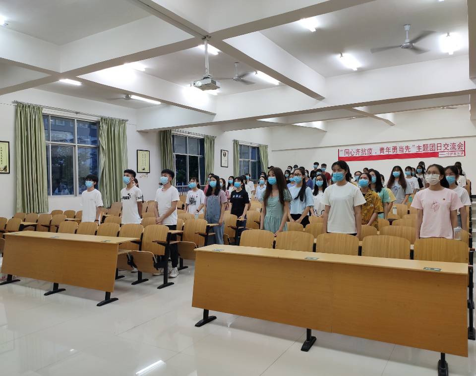 5月12日晚,同学们以宿舍为单位录制合唱视频,表达对抗疫一线逆行者的敬意。5月20日晚,全班同学在临桂校区N104教室召开主题团日活动总结交流会。同学们齐唱团歌,交流分享心得。辅导员寄语:希望大家坚持自己的内心,做事无愧于己,将自己的理想与国家的发展紧密结合,展现新时代大学生的社会担当。