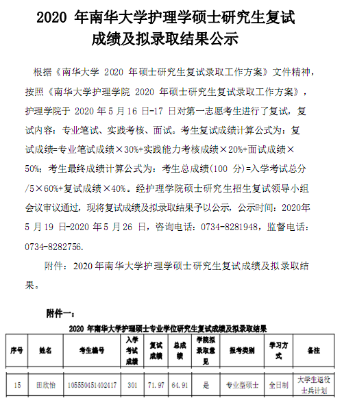 田欣怡同学作为护理学院目前为止唯一一位被拟录取硕士研究生的高职学生,她曾是一名光荣的退伍军人。2017年复学后,她积极参加自考专本衔接班,并曾凭自身的毅力和勤奋,过了英语四级,修完了所有自考本科课程,顺利拿到考研资格,并以总分301分的高分及大学生退役士兵计划,被南华大学拟录取。田欣怡同学以自身努力的星星之火,在其他同学间引发了应征入伍和渴望升学的燎原之势。祝愿她在未来的人生征程中再创辉煌!希望全体同学向她看齐,向她学习!