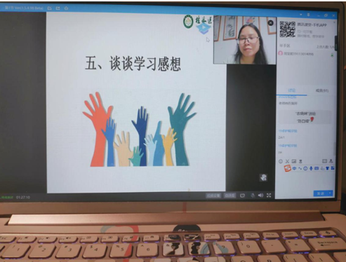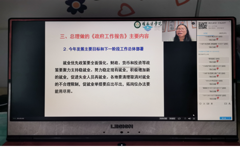 首先,陈老师通过列举下载学习强国app、关注学习大国微信公众号和人民网等途径,鼓励同学们积极关注两会进展。随后,她带领同学们学习两会的概况、李克强总理《政府工作报告》及习近平总书记对内蒙古人大代表和政协经济委员的讲话。她提到,不论世界风云如何变换,我国的经济总体运行平稳,党和政府一直重点关注民生问题,国家最高领导人一直把人民的就业,尤其是大学生的就业放在心上、摆在首位。在落实“六稳”和“六保”的前提下发展经济将是我们国家发展的主旋律。陈老师强调同学们应把关注国家大事作为一种习惯,成为同学们的基本素养。
