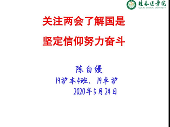 为了引导同学们关注两会、了解国事,激发同学们作为中国公民和中国当代大学生的幸福感,提高同学们的家国情怀和社会责任感,5月24日晚,辅导员陈白缦老师通过腾讯课堂召开了以“关注两会了解国事,坚定信仰努力奋斗”为主题的班会,19护本四、19卓护班全体学生参加了班会。
