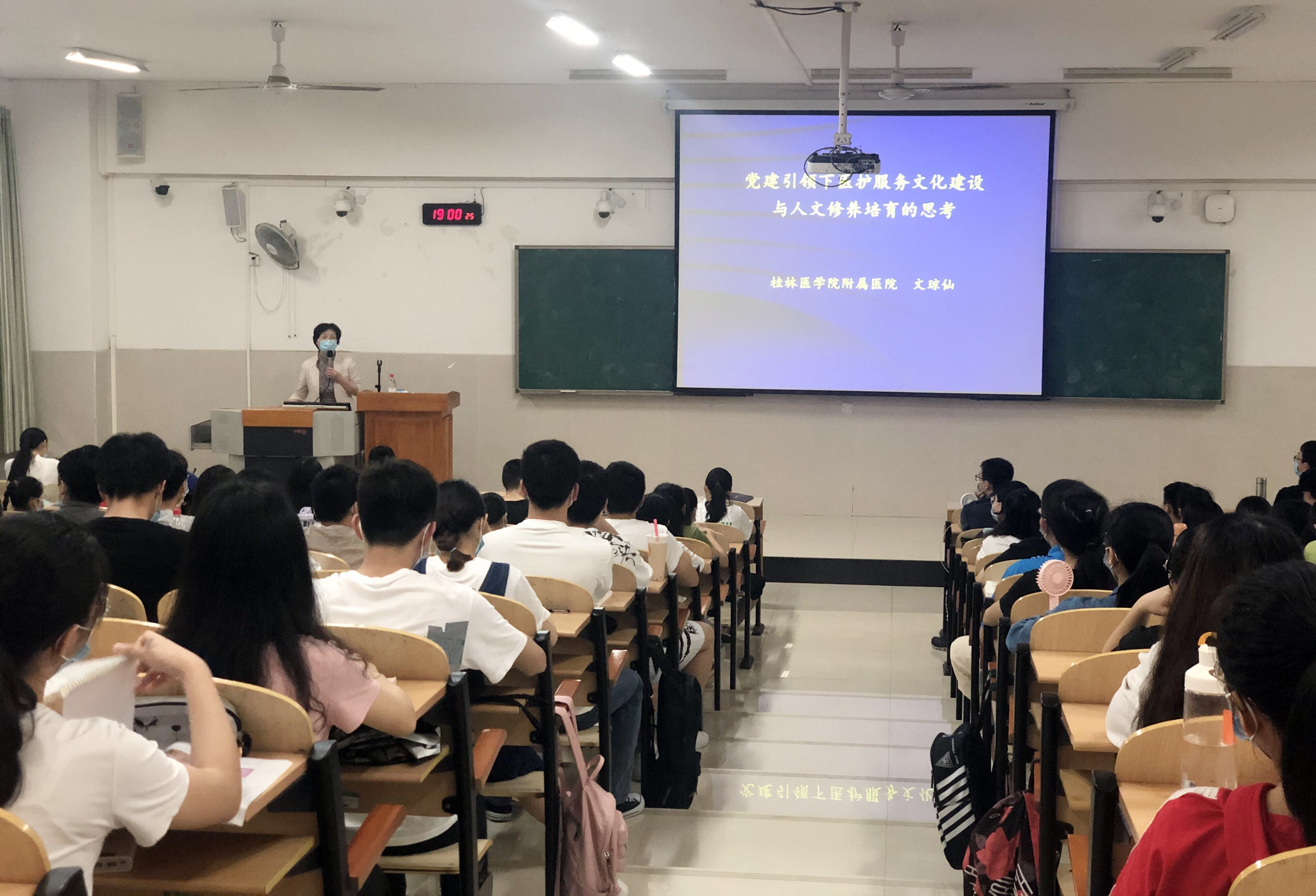 5月25日,临床医学院入党积极分子、发展对象培训班分党校在临桂校区开课,附属医院(临床医学院)党委书记文琼仙教授为125名大学生入党积极分子、发展对象开讲授课。