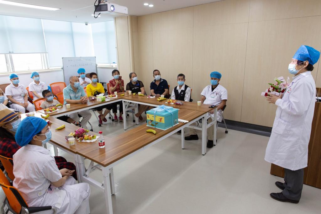 本次活动还邀请了一位特殊的病友,她四年前在我院肝胆胰外科行巨大肝癌切除术,今天是她的第四个“生日”,病友们和医护人员一起唱生日歌、吹蜡烛、许下美好的愿望,共同为她度过一个特殊又有意义的生日,她鼓励病友积极配合治疗。