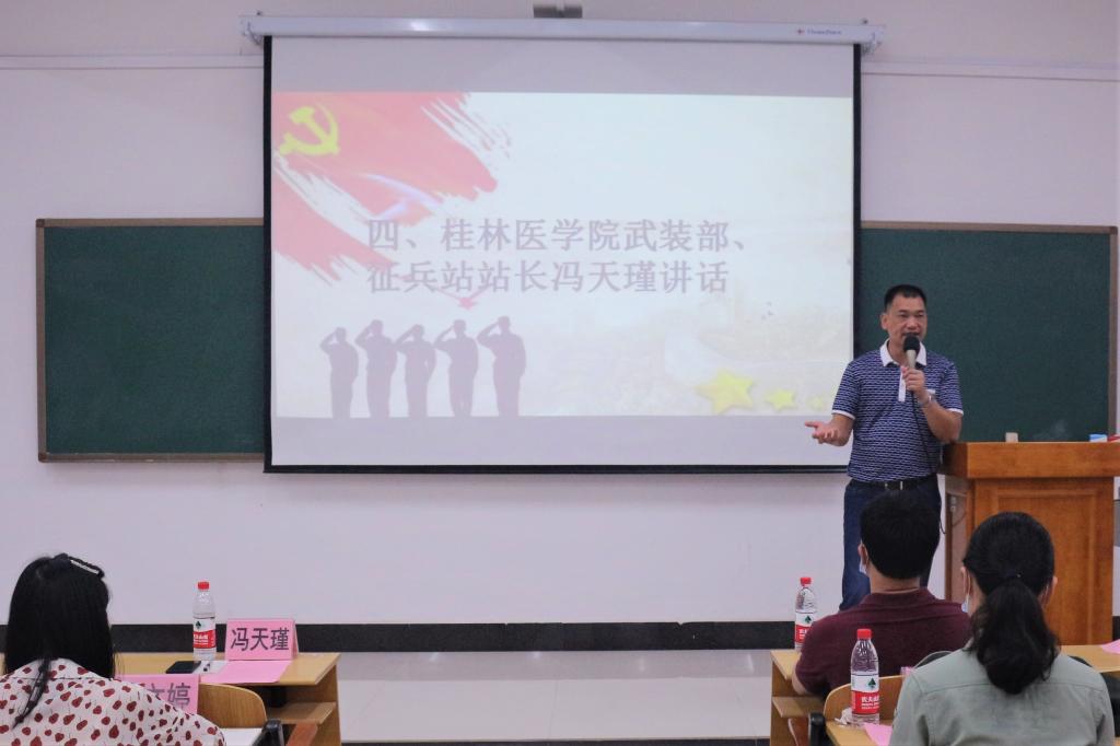 为响应国家征兵入伍的号召,激发我院学子参军报国的热情,发动广大适龄青年积极承担起保家卫国的责任,药学院于2020年6月3日上午9:00在临桂校区教学北楼403教室举办征兵宣传工作动员报告会。桂林医学院马克思主义学院刘朝华博士、校武装部部长冯天瑾、药学院全体辅导员以及优秀退役大学生代表作为嘉宾出席本次大会。