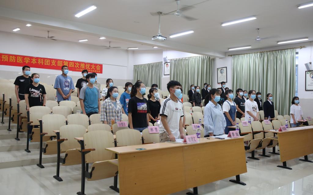 为了深入做好推优工作,履行党组织赋予共青团的光荣职责,公共卫生学院2018级预防医学本科团支部于2020年5月23日晚上19:00以线上与线下结合的形式举行第四次推优大会。全体同学均于“腾讯课堂”APP上观看此次推优,同时,嘉宾及全体班干在教学南楼101教室对本次推优大会进行观摩。