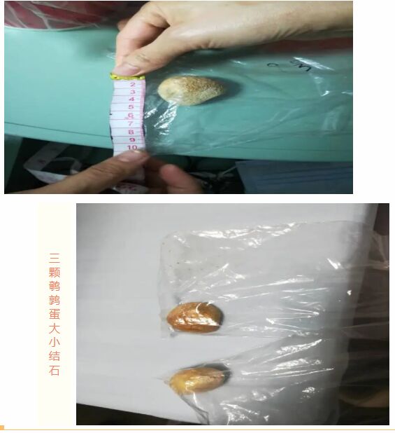 年近7旬的李奶奶一年前因脑出血导致半身瘫痪,且长期卧床并伴有排尿困难,CT检查发现膀胱中有三颗鹌鹑蛋大小的“舍利子”,俗称结石,而且结石周围有许多血块。