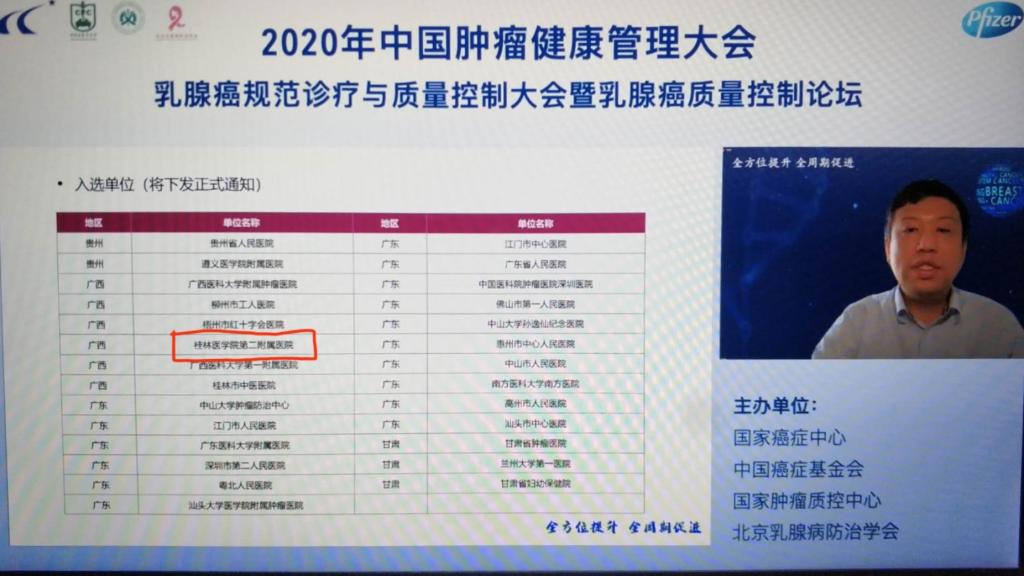 6月7日上午,由国家癌症中心、国家肿瘤质控中心主办的2020年中国肿瘤健康管理大会上传来喜讯,第二附属医院从全国上千家申报单位中脱颖而出,光荣入选首批全国乳腺癌规范诊疗示范中心建设单位,标志着我院乳腺癌的诊治水平步入全国先进行列。