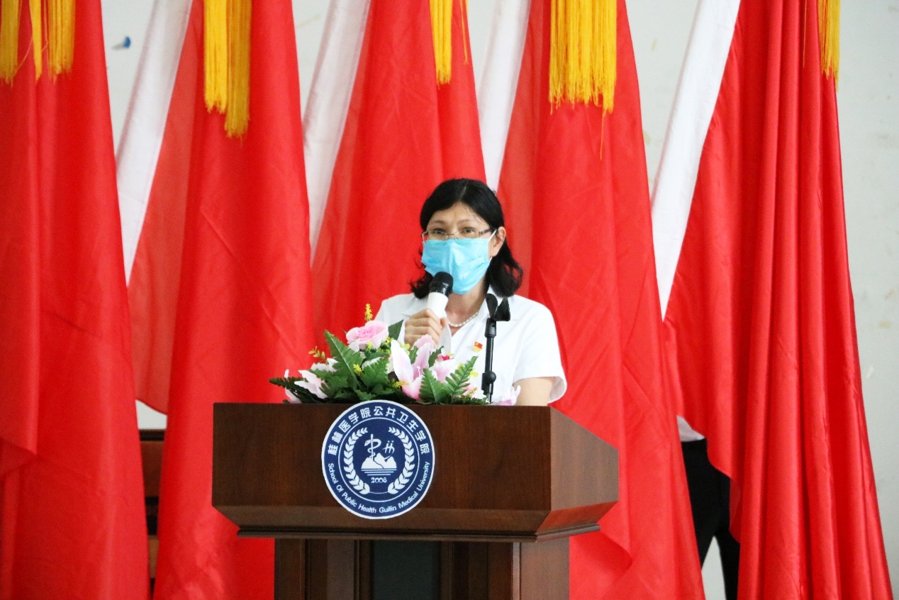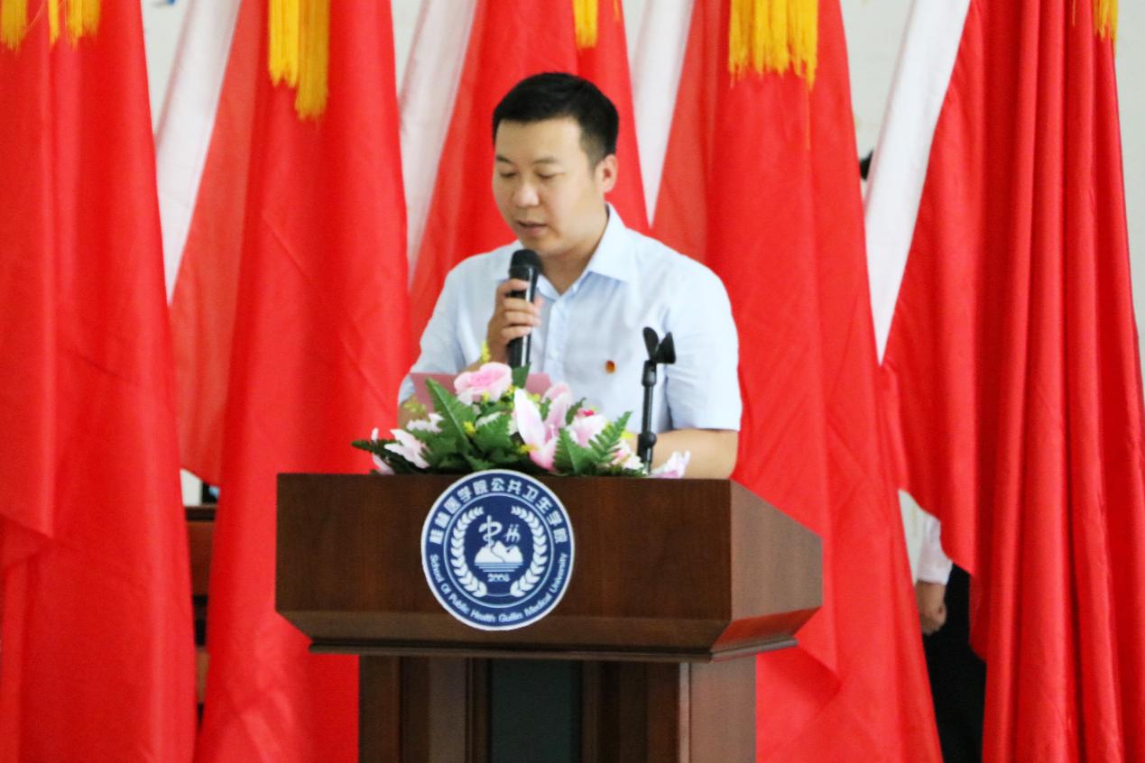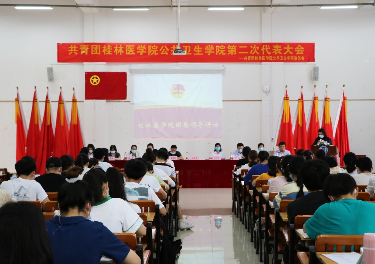 为加强公共卫生学院团委建设,推动共青团工作实现新发展,共青团桂林医学院公共卫生学院委员会于2020年6月12日下午在大学生活动中心二楼报告厅隆重举行共青团桂林医学院公共卫生学院第二次代表大会,参加大会的领导嘉宾:公共卫生学院党委书记谭盛葵、党委副书记莫丽琴、校团委办公室主任陈文颖、临床学院团委书记韦璇、护理学院团委书记秦芳、药学院团委书记于静娴、生物技术学院团委副书记金罗成以及医学检验学院团委副书记王秀娟,会议由公共卫生学院团委书记张国栋主持。