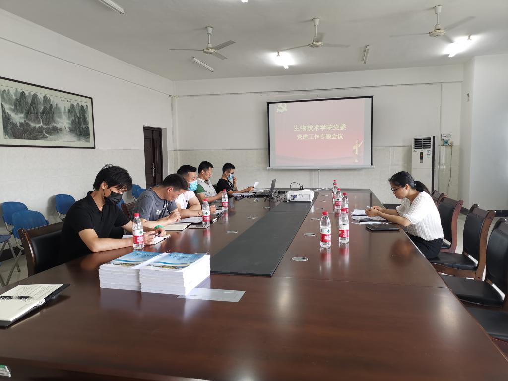 6月18日上午,生物技术学院党委召开2020年度党建工作专题会议,学习贯彻学校加强党支部标准化规范化建设文件精神,研究部署基层党组织常态化疫情防控“四个一”行动计划。会议由党委书记麦婕主持,全体党支部书记参加会议。