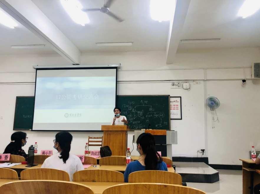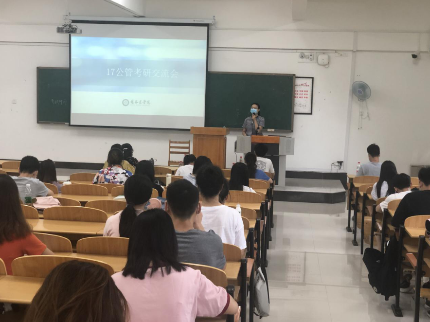2020年6月18日,人文与管理学院2017级公共事业管理(卫生事业管理方向)专业班级在临桂校区N102教室开展了考研交流会。班级导师吕如龙博士、公共事业管理教研室周子力老师、班级辅导员周小群老师、16级考研成功的同学以及班级全体同学参加交流会。