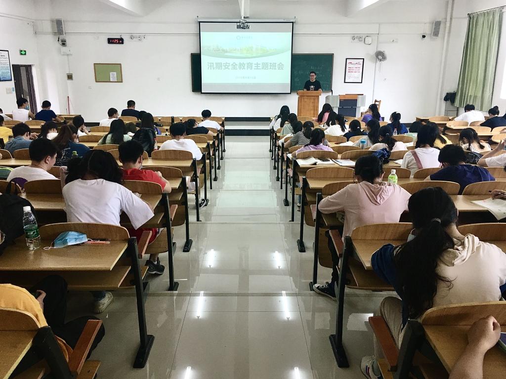 在开展“安全生产月”和“安全生产八桂行”活动期间,各班级辅导员通过安全教育主题班会,组织学生观看安全警示教育和科普宣传片,并且结合实际案例和时事新闻,重点对汛期期间的防溺水教育、假期出行的交通安全、食品安全进行典型事故剖析,举行安全教育大讨论。以夏季防溺水为重点,开展预防溺水专项教育,通过实际事例,以图片和视频等形式对学生进行警示教育,加强学生的安全意识。同时介绍防溺水和科学施救等方面的基础知识和技能,让学生掌握预防溺水知识和提高遇险逃生、自救互救的技能。并且,进一步结合电信诈骗、不良校园贷案例进行讨论和分析,提高学生安全意识,防范同类事故发生。