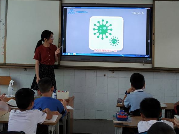课堂上,志愿者通过问答的方式与屏幕前的同学们互动,提醒同学们在日常生活中要注意养成良好的卫生习惯,才能更好地预防病毒。课堂接近尾声,志愿者为同学们播放附院援鄂老师们录制的视频。视频中,老师们分享了在湖北抗疫期间的所见所闻及心得体会,并对同学们寄以殷切嘱托。课堂最后,志愿者们向广大学子发出呼吁:病毒无情,人间有爱。抗击疫情,需要大家的共同努力。