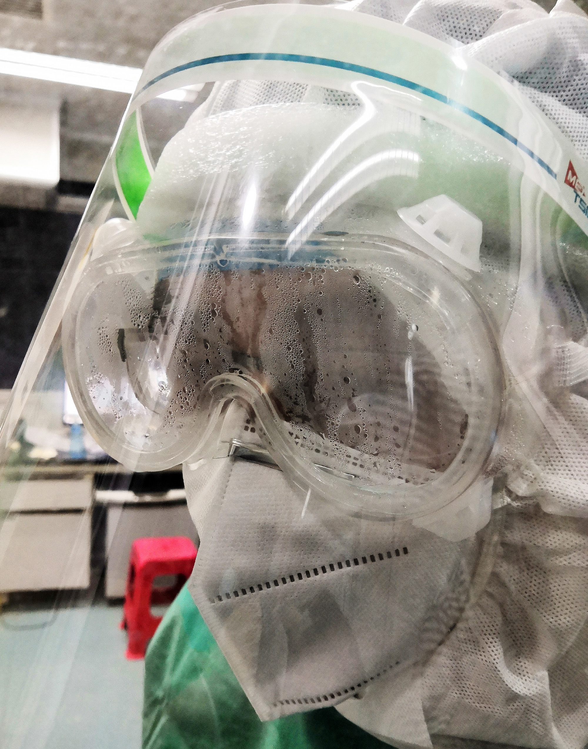 一批核酸检测需要队员穿着厚厚的防护服连续工作7个多小时。检测人员不怕苦、不怕累,克服了重重困难和考验,很好地完成了重点人群的检测任务,全力支持医院“应检尽检,愿检尽检”的防疫工作。