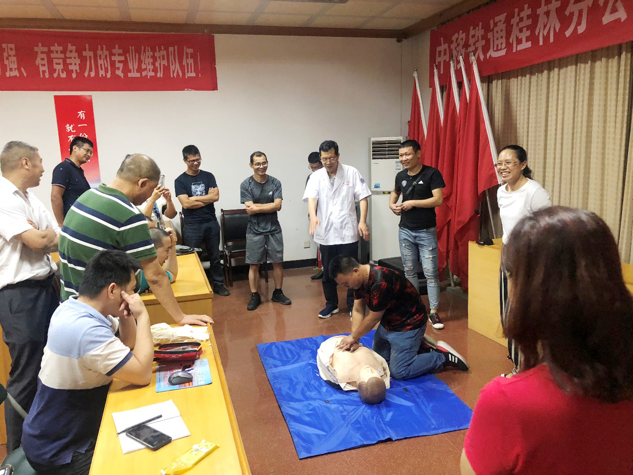 连日来,桂林医学院附属医院健康管理中心的医疗团队分别来到桂林北站、中移铁通桂林分公司开展健康咨询、健康讲座及急救演练等活动。