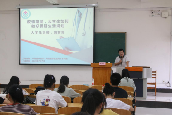 7月7日下午,临桂临床医学院在教学北楼103教室举行大学生导师交流会。桂林医学院第二附属医院(临桂临床医学院)党委副书记刘梦青上了一堂主题为“疫情期间,大学生如何做好假期生活规划”的大学生导师课,学工办辅导员敬晓娟和18级临床医学(免费医学定向)本科班全体学生参加本次交流会。