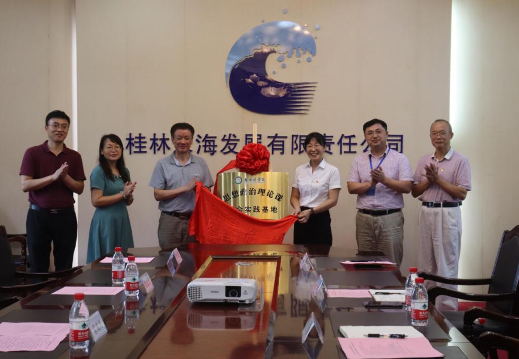 为进一步贯彻落实学校党委常委会专题会议纪要(【2020】5号)精神,推进马克思主义学院建设和思想政治理论课教学上新台阶,7月10日上午,马克思主义学院与桂林长海发展有限责任公司共同举行思想政治理论课社会实践教学基地签约、挂牌活动,桂林长海发展有限责任公司党委副书记沈静、党务人事部部长王冰、马克思主义学院院长蒙成光等参加了签约、挂牌仪式。