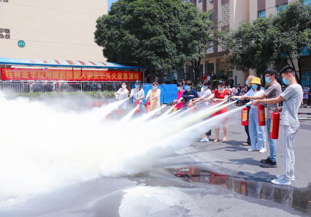 为增强附属医院全院职工消防安全意识,切实提高处置初期火情能力,掌握正确使用灭火器及疏散逃生方法,7月15日上午,附属医院保卫科在乐群校区操场开展新入职员工岗前消防安全培训,并进行了灭火应急演练,附属医院副院长蒋伟,以及新入职员工、保卫科相关人员共300余人参加本次活动。