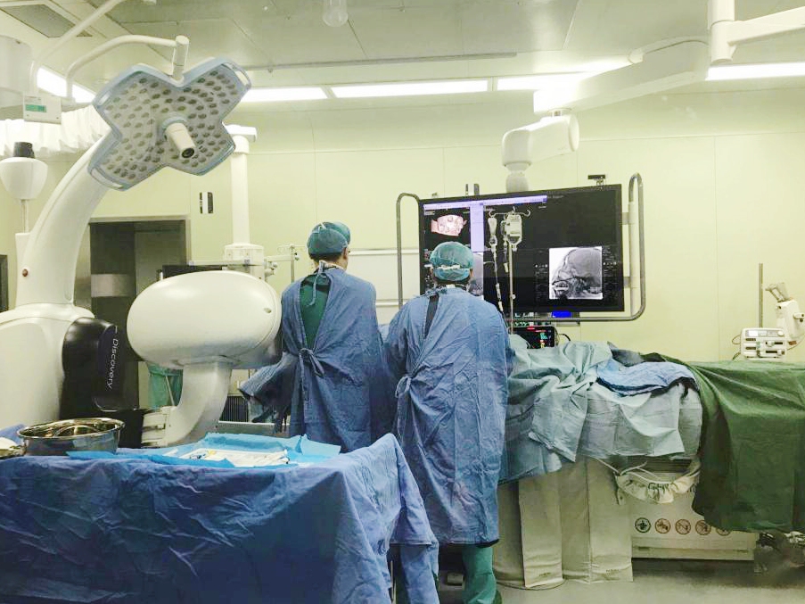 “治疗三叉神经痛可采取三叉神经射频热凝疗法和三叉神经半月神经节微球囊压迫术等方式,由于患者7年前因左侧三叉神经痛做过三叉神经射频热凝疗法,他非常抗拒,所以,我们决定为其进行右侧三叉神经半月神经节微球囊压迫术。”疼痛科负责人葛鹏飞说。葛鹏飞及主管医师袁振宇为杨大伯为患者进行了详细检查,并根据患者情况制定了个性化的治疗方案。