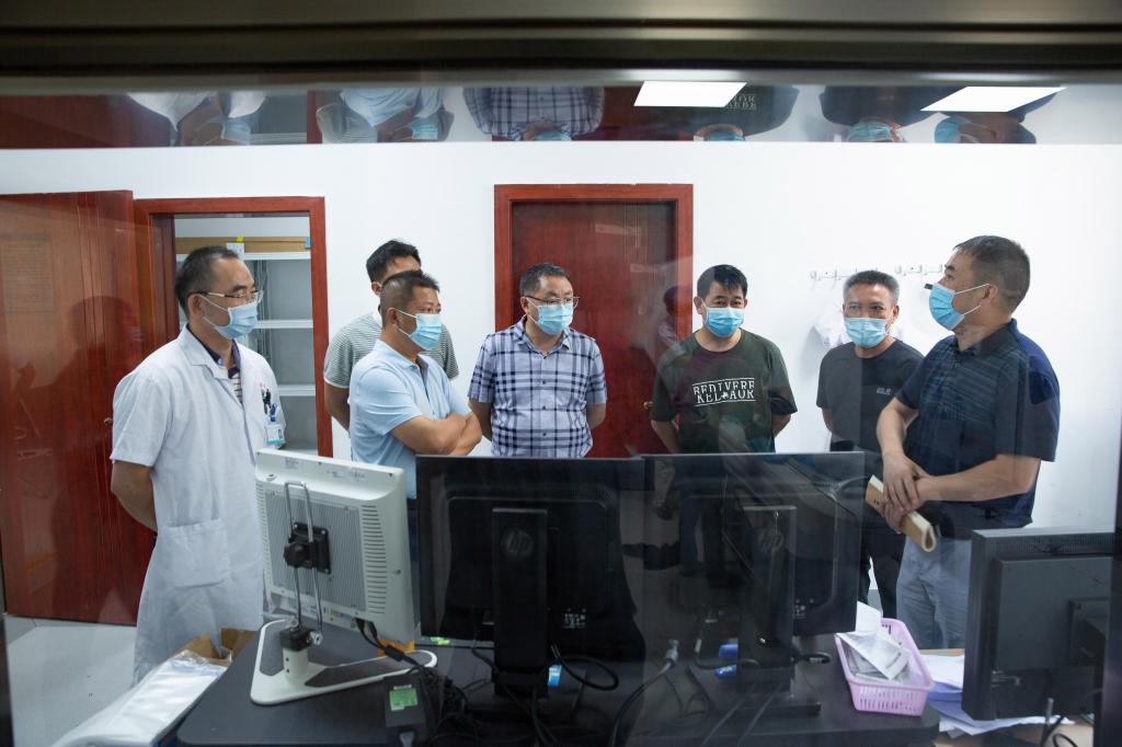 座谈会结束后,赵瑞文一行在夏中华、刘洪波的陪同下来到放射科,参观该科的仪器设备。放射科主任曹林德就放射科的建设情况做了热情的介绍,目前第二附属医院放射科配备国际、国内先进德国西门子3.0T超高场强MR系统、美国GE公司64排能谱CT等大型先进设备,技术力量雄厚。科室拥有一支40余人、技术过硬的医、技、护专业队伍。多年来优质的服务、良好的医德医风、出色的诊疗质量赢得了广大患者的信赖,树立了良好的社会形象。