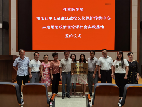 7月23日上午,马克思主义学院与灌阳红军长征湘江战役文化保护传承中心共同举行思想政治理论课社会实践教学基地签约、挂牌活动。灌阳红军长征湘江战役文化保护传承中心主任吕辉、马克思主义学院院长蒙成光、副院长吕卫华等参加了签约、挂牌仪式。