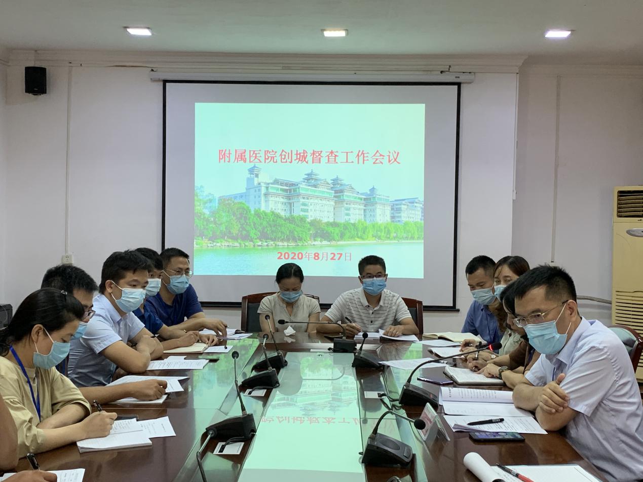 正值桂林市创建全国文明城市工作决战决胜之际,为敦促全院创城工作部门不松劲、不泄气,全力冲刺创城工作,附属医院纪检监察室于8月27日上午牵头组织召开创城督查工作会议。附属医院党委副书记、纪委书记滕若冰出席会议,党办、院办、医务部、护理部等十余个部门创城工作负责人参加会议。