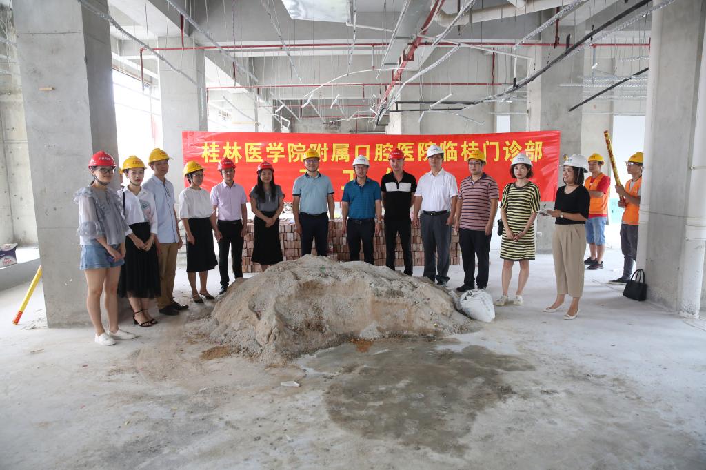 9月6日上午10时,附属口腔医院临桂门诊部装修工程正式启动,医院领导班子、部分中层干部及项目施工方出席动工仪式。临桂门诊部位于临桂新区西城北路21号时代香耕园2栋,总面积约800平方米,规划建设综合诊室、VIP诊室、种植手术室共计16间,设置牙椅17张,同时配备全新的数字化诊疗中心及医学影像室。工程计划于2020年底完工,次年元月投入使用。