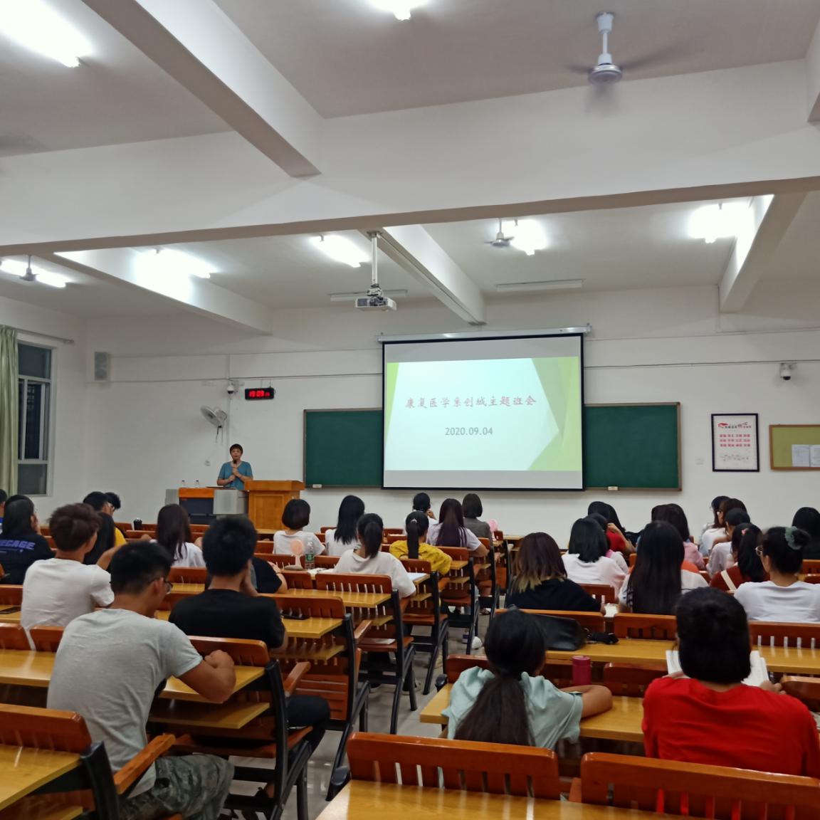 为扎实推进创建桂林市文明城市工作,引导同学们积极参与创建文明城市,提高同学们的文明程度,9月4日晚,康复医学系在临桂校区教学北楼210教室对2019级康复治疗学本科班学生开展“康复医学系创城主题班会”,康复医学系学工办主任、2019级康复治疗学本科班辅导员容桂荣到场为同学们授课。