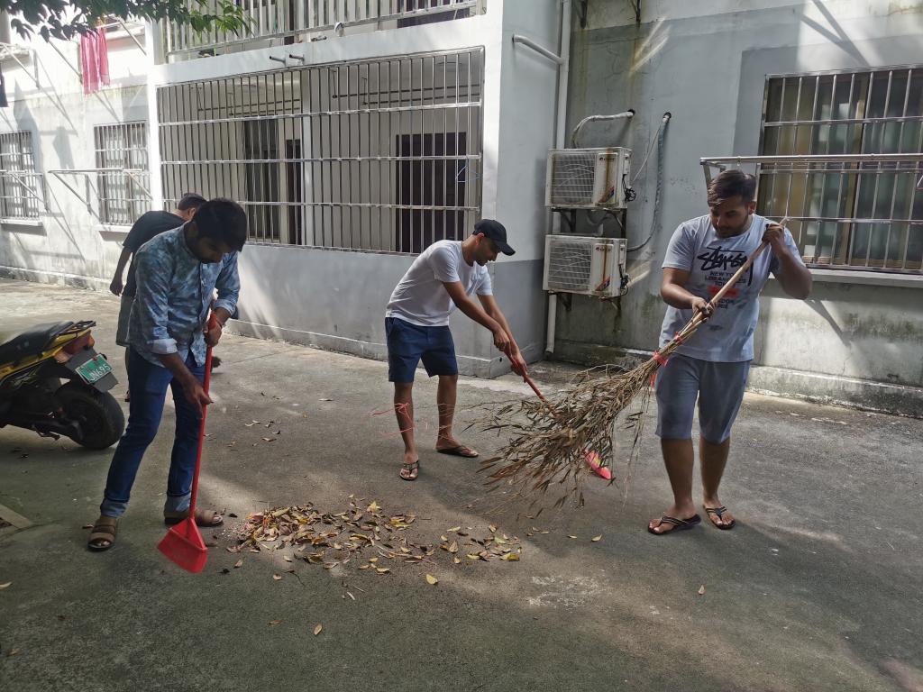 为配合桂林市做好全国文明城市创建工作,共建美丽家园,9月10日上午,国际教育学院负责人魏兵组织国教院部分教职员工对临桂校区国际教育交流中心办公区、留学生宿舍及周边环境卫生进行了巡查整治。