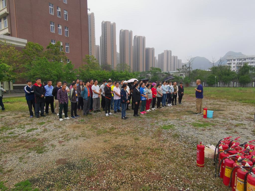 为增强食堂新入职与在职从业人员的防火及消防安全意识,使食堂从业人员掌握消防器材的操作使用方法。9月25日下午,学校保卫处、后勤管理处组织临桂校区全体食堂从业人员开展消防安全灭火演练。膳食科管理人员、食堂从业人员约70人参加消防安全灭火演练。