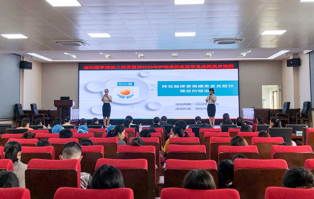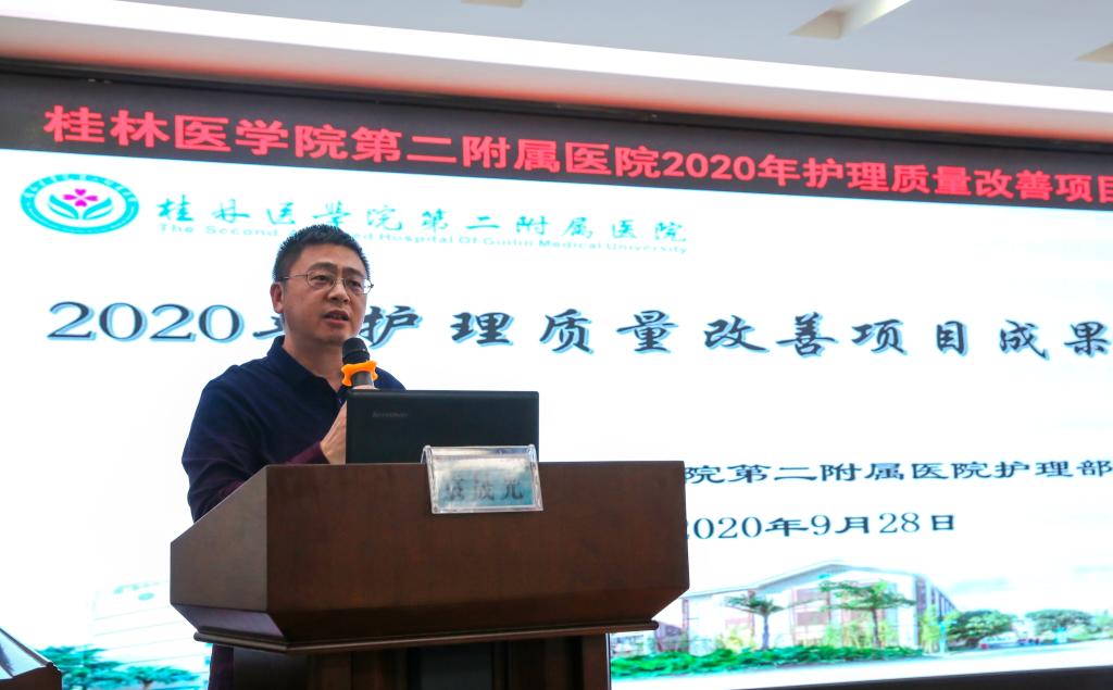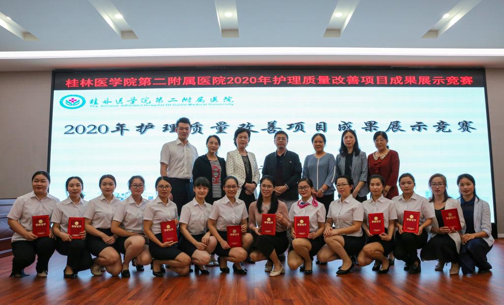 为落实持续质量改进,全面推进质量管理工具的应用,助力“三甲”医院创建工作。第二附属医院护理部于9月28日下午在9号楼3楼会议室举办了“2020年临床护理质量改善项目成果展示竞赛”。附属医院质管部主任韦欢、副主任刘漪,第二附属医院副院长袁晟光、顾问郭芸、质管部主任王莉、护理部副主任谭李军参加本次竞赛并担任评委。护士长及护理人员共计150人到现场观摩了竞赛。