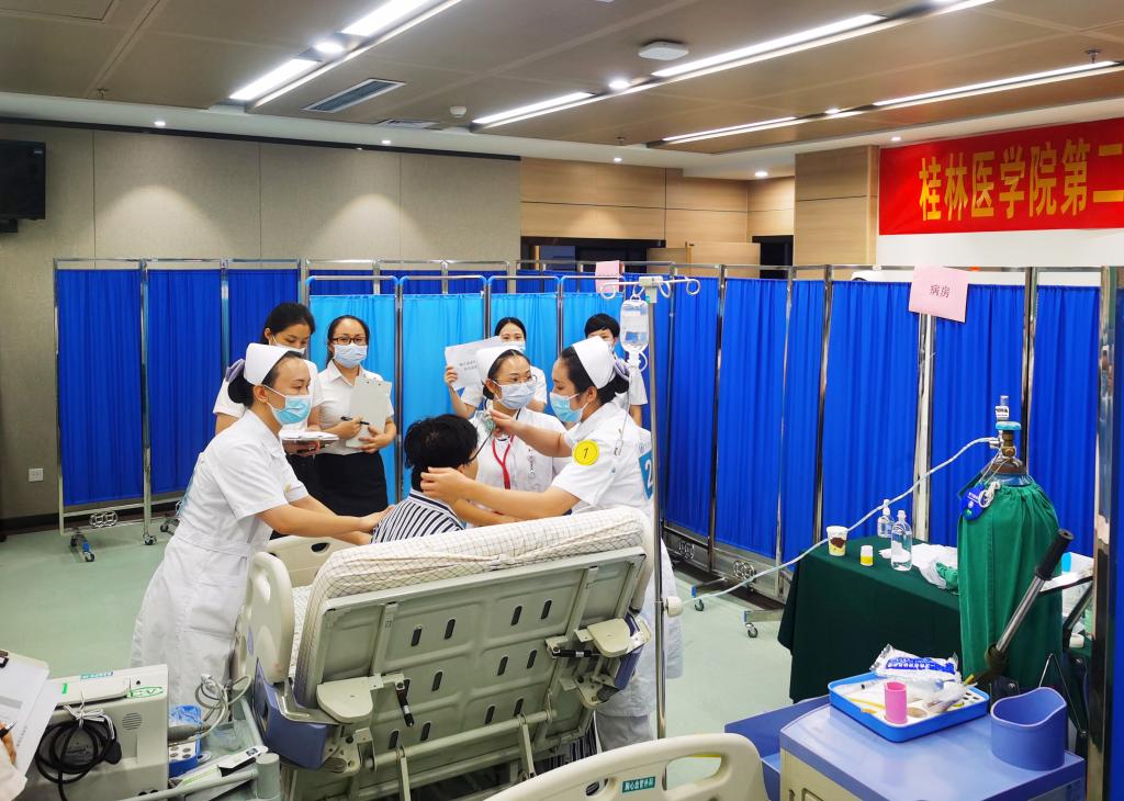 为进一步提升全院护理人员急救技能及应对突发事件的应急能力,第二附属医院护理部于9月29日下午举办了“2020年护理临床急救技能竞赛”。医院副院长袁晟光,顾问郭芸,护理部主任马金秀、副主任谭李军及大科护士长担任此次竞赛的评委,各科护士长及护理人员约120人现场观看了竞赛。