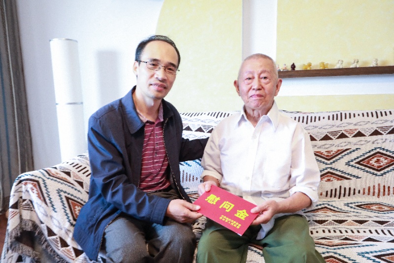 为纪念中国人民抗日战争暨世界反法西斯战争胜利75周年,受桂林市退役军人事务局委托,附属医院党委副书记王海平来到抗战时期参加过抗日战争的老同志、老领导张春光家中进行慰问,并送上慰问金,向他表达崇高敬意和亲切问候。
