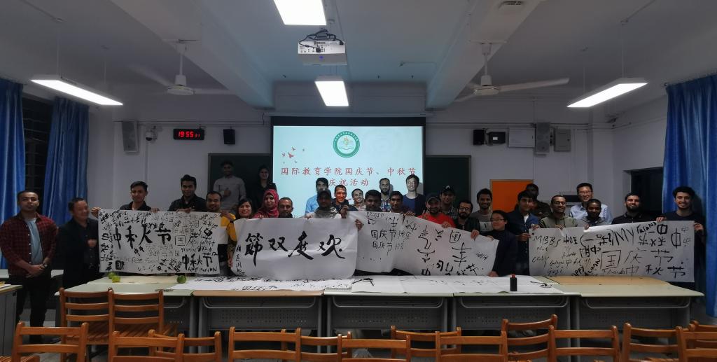 9月30日下午,国庆、中秋双节来临之际,国际教育学院组织在校留学生举办了一场以欢庆国庆、中秋为主题的座谈会。话中秋、品月饼、写书法等节目让身在异国的留学生们感受到了别样的团聚和温暖。