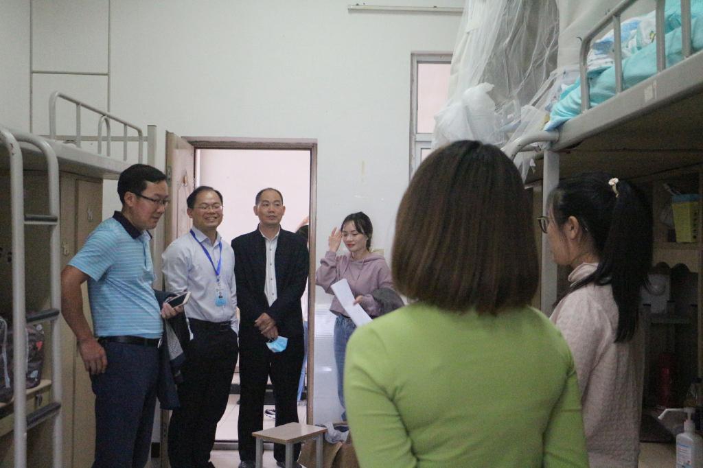 为了解新生宿舍情况,排查宿舍安全隐患,增强师生沟通交流。10月10日下午四点,公共卫生学院党委书记谭盛葵、党委副书记庞伟毅、副院长封少龙、学工办老师喜俊霞和新生辅导员徐益彩对新生宿舍进行了走访。