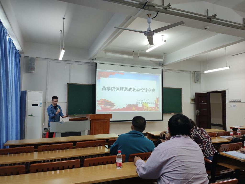 为了在专业课程教学过程中积极挖掘思政元素,将育人目标、家国情怀、社会责任、人文精神等思政元素自然融入教学过程,促进思政教育和专业教育的有机融合。9月24日下午3:00,在药学院3205教室举办药学院课程思政教学设计竞赛。