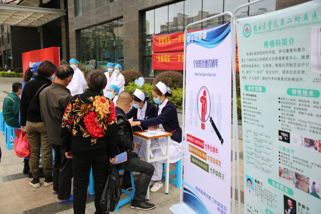 此次活动由二附院及桂林市应急管理局联合主办,红十字志愿救援队协办,二附院疼痛科、康复医学科、中医科、麻醉科、口腔科积极响应,院内多位知名专家参加义诊。