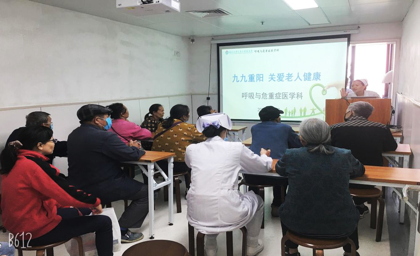 重阳节,被设立为我国的老人节。尊老敬老是中华民族的传统美德,关爱老人是每一位医护人员义不容辞的责任。重阳节前夕,第二附属医院呼吸与危重症医学科在呼吸科示教室开展了九九重阳-关爱老人健康的活动。