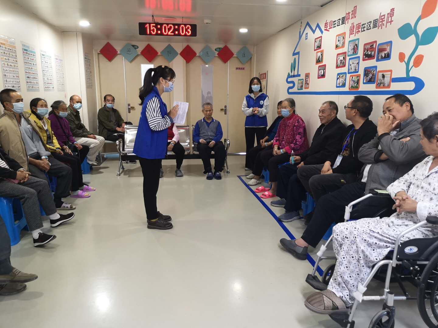活动一开始,医务社工与老人们通过“击鼓传物”小游戏,让大家互相认识,气氛逐渐变得热络起来。随后,康复科技师为老人们做了康复知识宣讲和现场演示,为老人在住院期间及出院后康复提供了有效指导。通过“猜谜语”、游戏抢答等活动,让老人们充分参与到活动中来,大家在游戏中互诉衷肠,分享自己的感受,脸上洋溢着幸福的笑容。