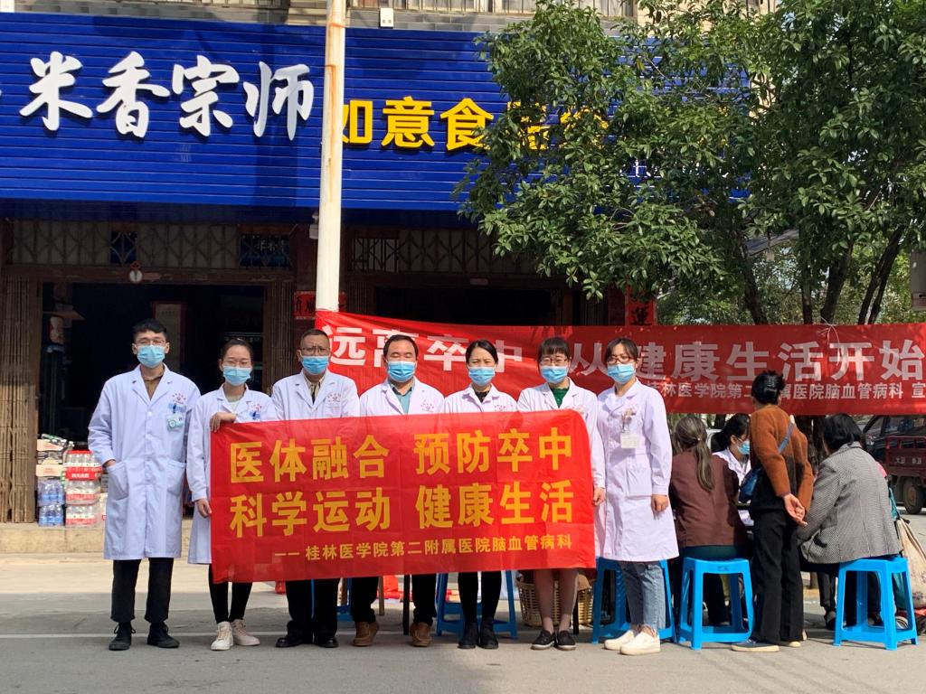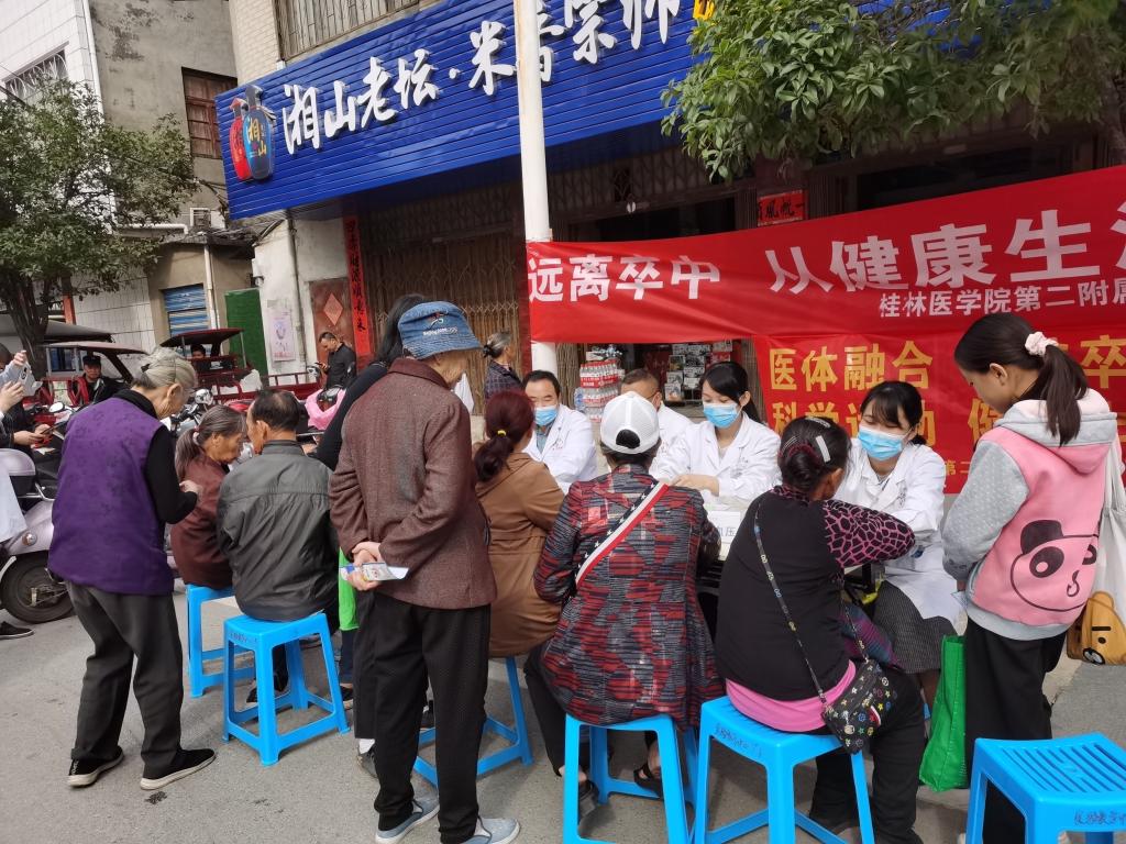 此次义诊由第二附属医院脑血管病科联合神经内科、内分泌科、康复医学科、疼痛科、胃肠外科、营养科分两场进行举行。分别于10月24日在医院6号楼前小广场,和10月31日上午在临桂镇政府邀请下,在临桂镇庙岭农贸市场进行,宣传和科普脑卒中防治知识,引导大众正确认识脑卒中,倡导健康生活方式。