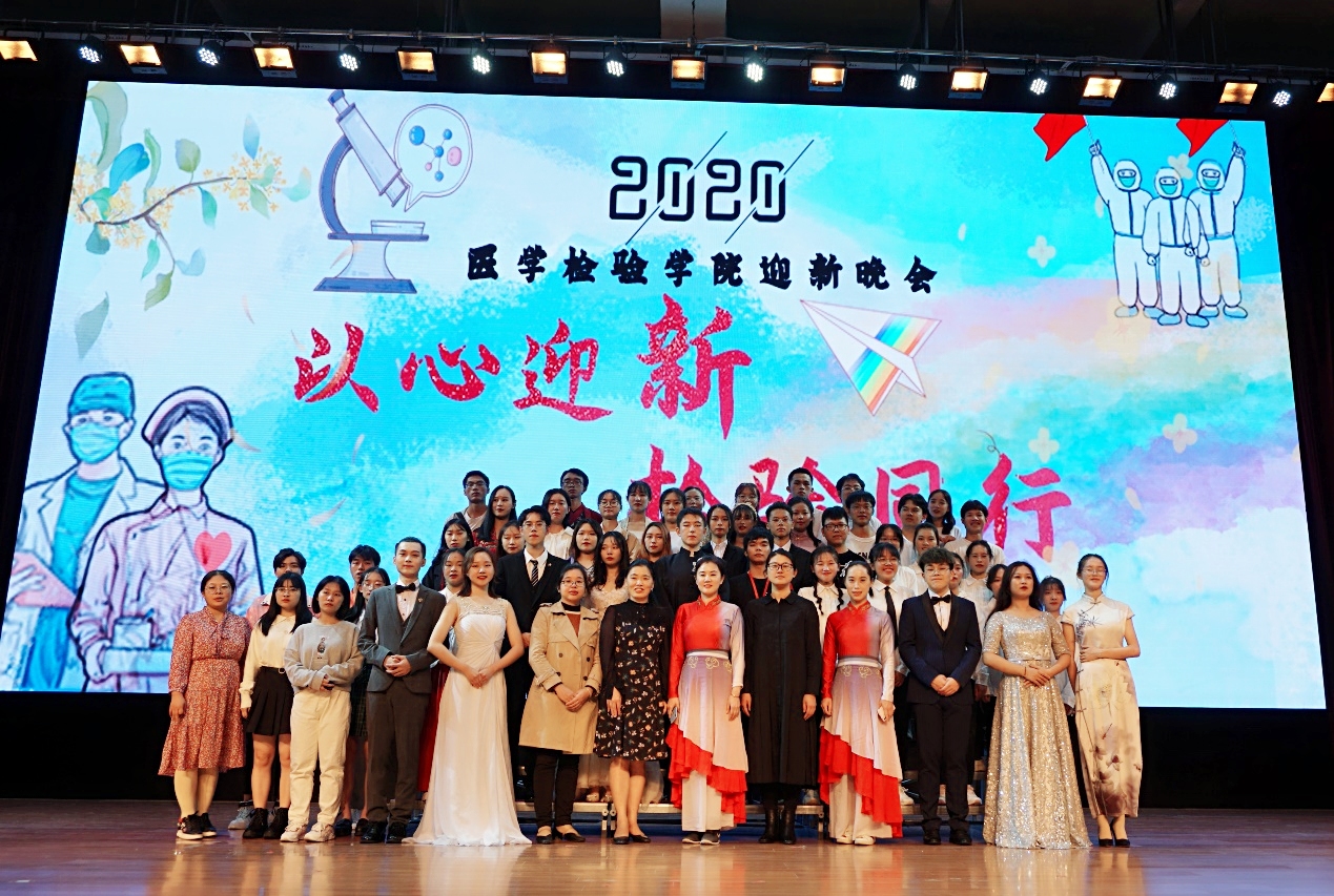 为表示对2020级新生的热烈欢迎,展现医学检验学院大家庭的风采。11月7日晚,医学检验学院于临桂校区大学生活动中心四楼演播厅举办医学检验学院2019-2020学年度颁奖典礼暨“以心迎新,检验同行”迎新晚会。医学检验学院党委副书记黄晨,副院长谭洁,副院长尹铁球,教学管理科科长邹霞,团委副书记王秀娟,学工办副主任、19、20检本辅导员黄艳芸,17、18检本辅导员蒋小英,20检本班主任盖立杰,校学生会、其他二级学院学生会代表及全体检验师生参与此次晚会。
