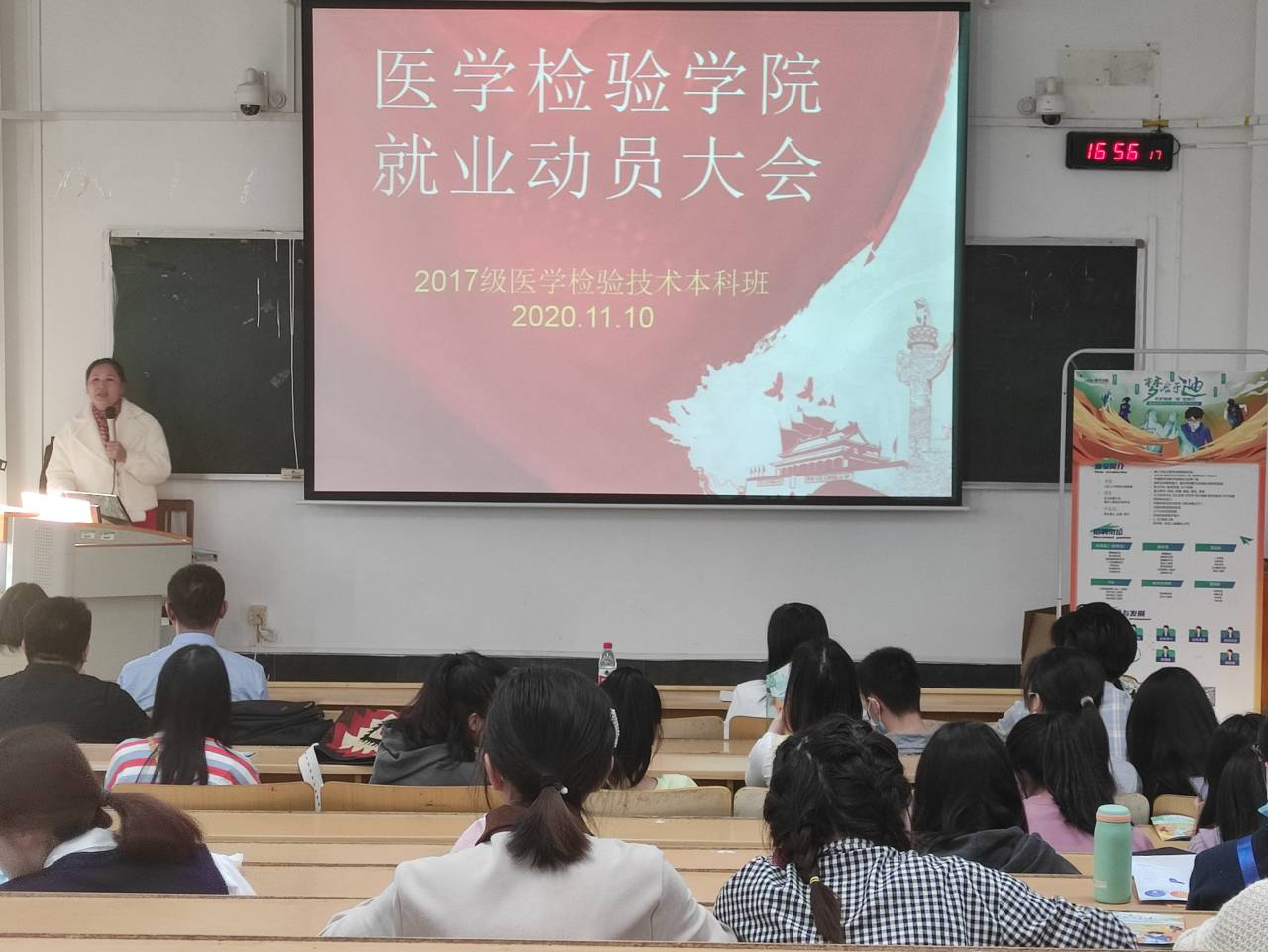 为帮助2021届毕业生认清就业形势,明确当前的主要任务,树立正确务实的就业观念,医学检验学院于11月10日下午在东城校区T2-2举办毕业生就业动员大会。学院党委副书记黄晨、副院长尹铁球、17检本辅导员以及全体2021届毕业生参加了此次大会。
