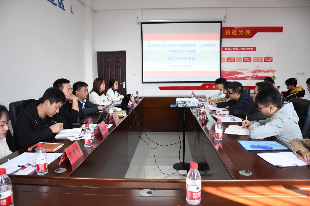 11月14日,全科医学院党委副书记潘涛带领全体学工辅导员以及学生干部代表一行15人到桂林电子科技大学建筑与交通工程学院、人工智能学院开展学习交流活动。