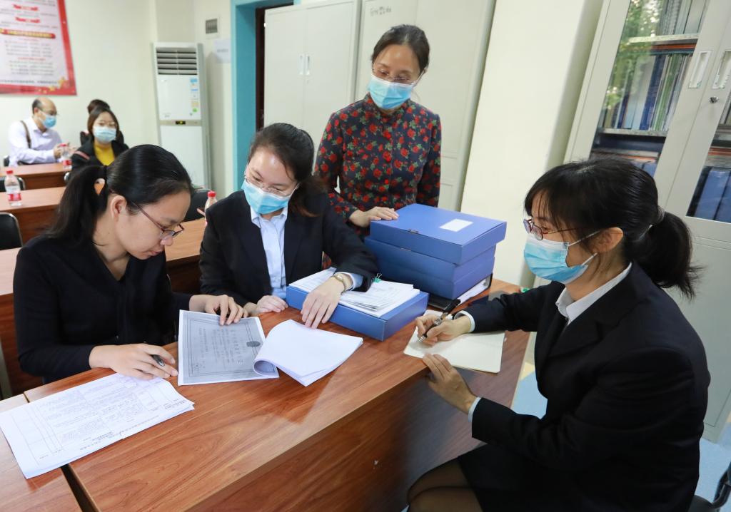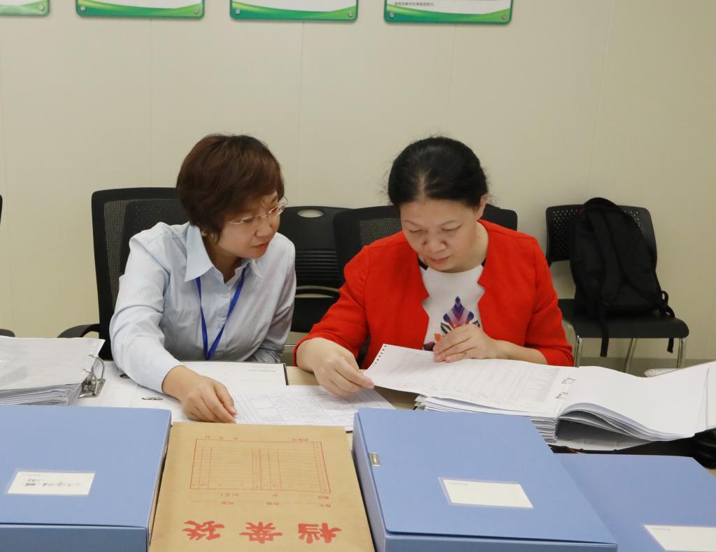 专家在查阅培训基地的台账