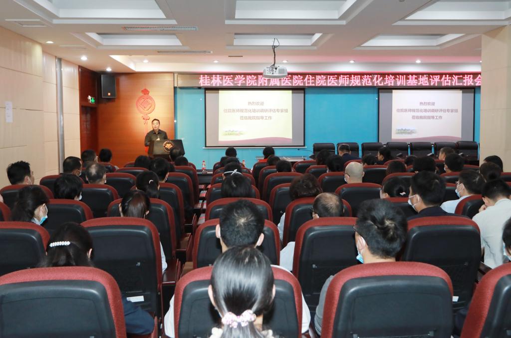 11月19日,自治区卫健委住院医师规范化培训调研评估专家组一行5人,来到附属医院开展住院医师规范化培训工作的全面调研评估。附属医院党委书记宋剑非、副书记王海平、副院长汪丽燕和各职能部门负责人以及各专业基地、各轮转科室教学管理人员90余人参加调研评估汇报会。