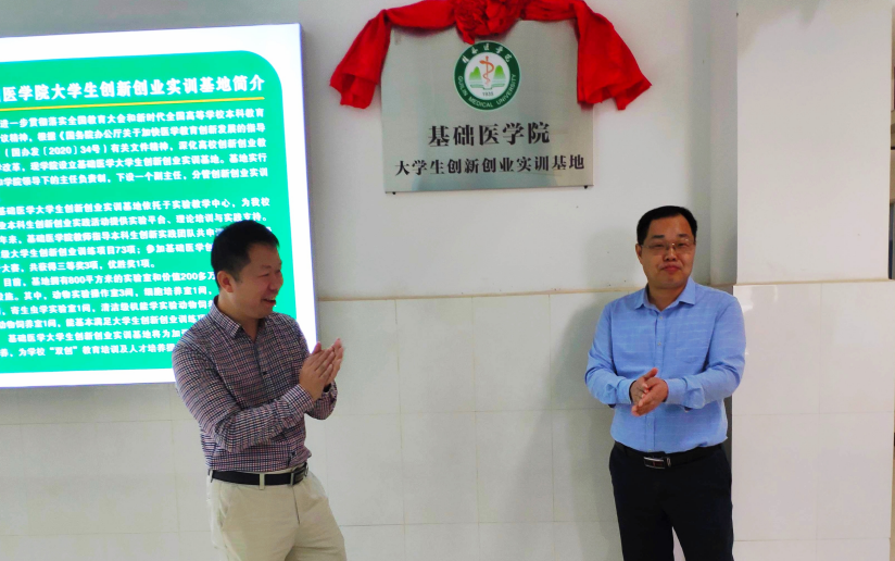 为进一步贯彻落实全国教育大会和新时代全国本科高等学校本科教育工作会议精神,根据《国务院办公厅关于加快医学创新发展的指导意见》(国办发[2020]34号)文件精神,深化高校创新创业教育教学改革,将“三全”育人落实到位,基础医学院成立大学生创新创业实训基地。