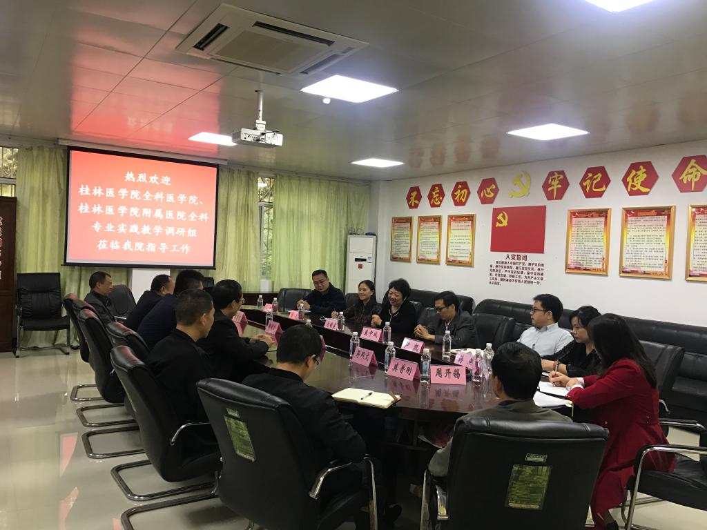 为检查我院2016级全科医学专业学生毕业实习情况以及洽谈2017级全科医学专业学生毕业实习事宜,同时拓展一批优秀的实践教学基地,由全科医学院领导率教学科研科和学工办老师于11月17日—25日分别赴荔浦、阳朔、兴安、灵川、永福等5家二级医院开展全科医学专业实习中期检查工作,并对全州、灌阳、恭城、银海等4家二级医院开展调研并签订了教学医院协议书,参加此次调研活动的还有学校教务处莫中成副处长及附属医院医联体石凯老师。