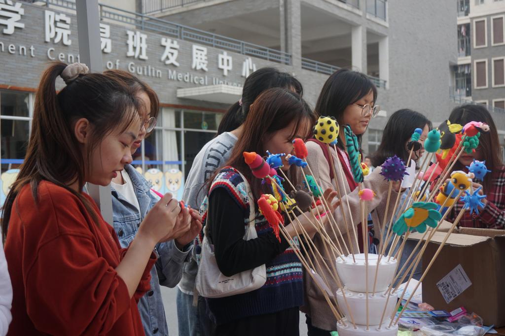 11月21日上午,线下摆摊活动于临桂校区校道上如期的进行。活动共分为“易”圈“易”答、“易”起做泥塑、“易”勇向前以及“易”留言四个内容。“易”起做泥塑环节,同学们凭借对微生物的了解用灵巧的双手向大家展示出微生物的独特特征;在“易”勇向前这一环节中,以图片竞猜细胞病毒或医学仪器的形式,让同学们对微观世界有了更深的了解。并在“易”比拼板块中学会了如何正确使用移液器材,在“易”圈“易”答环节认识熟悉了各种微生物的形态特征。在最后的“易”留言环节中,同学们写下了自己对于这次活动的感悟以及对未来的憧憬。