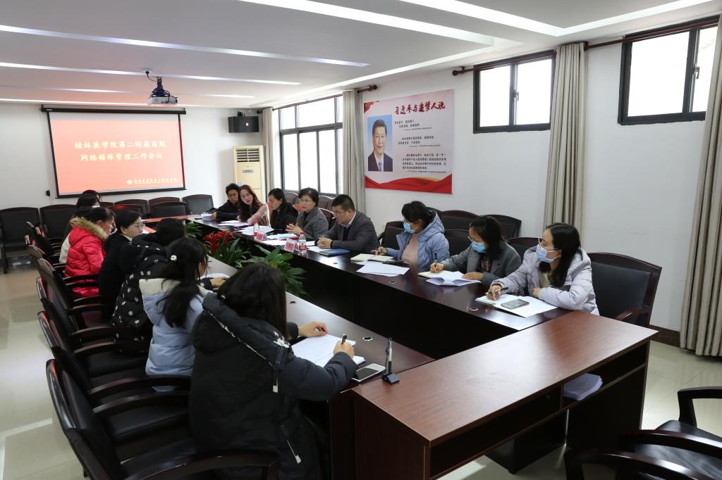 12月2日,第二附属医院召开网络媒体管理工作会议。医院党委书记文琼仙、党委副书记刘梦青、医院参与网络媒体管理各相关负责人及宣传科相关工作人员参加会议。会议由党委副书记刘梦青主持。
